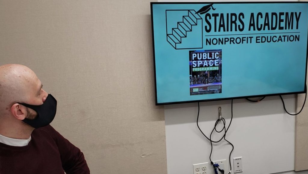 Interns from Brooklyn College and BMCC met with directors Graeme Sibirsky and China Aroh for training, at Grand Army Plaza’s Brooklyn Public Library.